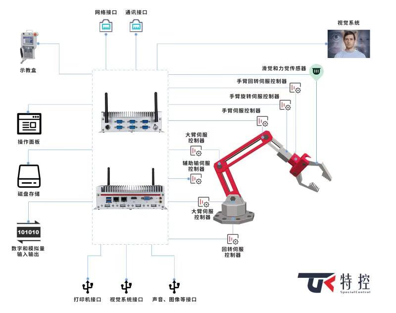 由于采摘機器人所處的環(huán)境相對復(fù)雜多變,對控制系統(tǒng)硬件方面的要求更為嚴(yán)苛,普通的硬件是無法勝任的,只有工業(yè)級的計算機硬件才能為工業(yè)機器人提供專業(yè)硬件方案支持。特控推出的新一代嵌入式工控機,支持第五代/六代i7/i5/i3處理器,支持VGA、 HDMI顯示接口和雙網(wǎng)口,并提供多種通訊接口等接口。另外此款嵌入式工控機外觀結(jié)構(gòu)緊湊小巧,節(jié)省空間。銀白紅色相搭顯得時尚大氣,全密封鋁合金箱體,大面積鋁鰭散熱,無風(fēng)扇設(shè)計??蛊茐哪芰?,適應(yīng)寬溫,能在粉塵大、濕度高等惡劣環(huán)境條件下穩(wěn)定運行,可靠性高。