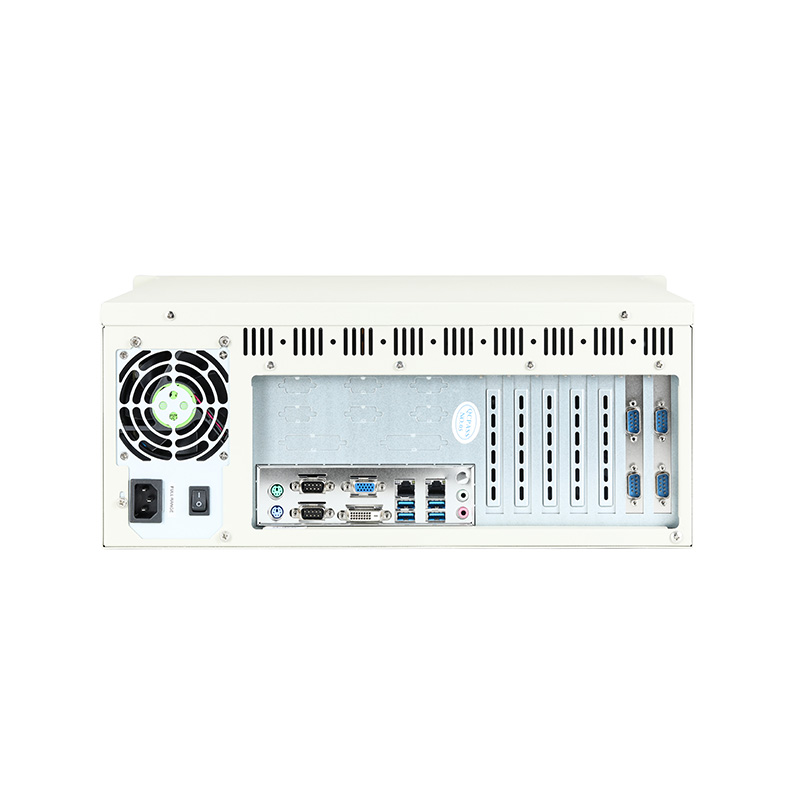 穩(wěn)定可靠 : 全金屬設(shè)計(jì),機(jī)箱可抗接觸式4KV強(qiáng)電磁干擾兼容性強(qiáng) : 支持MINI-ITX、Micro-ATX、ATX等全系列工業(yè)板卡高性能 : 支持4代 LGA1150 Intel Core I3/I5/I7全系列CPU或E3-1200V系列CPU接口豐富 : 2*LAN,6*COM,6*USB,VGA+DVI, 支持同步和異步,支持1*Msata、2*3.5寸+1*2.5寸硬盤位,支持光驅(qū)位,1*PCIEx16,1*PCIEx4,1*PCIEx1,4*PCI